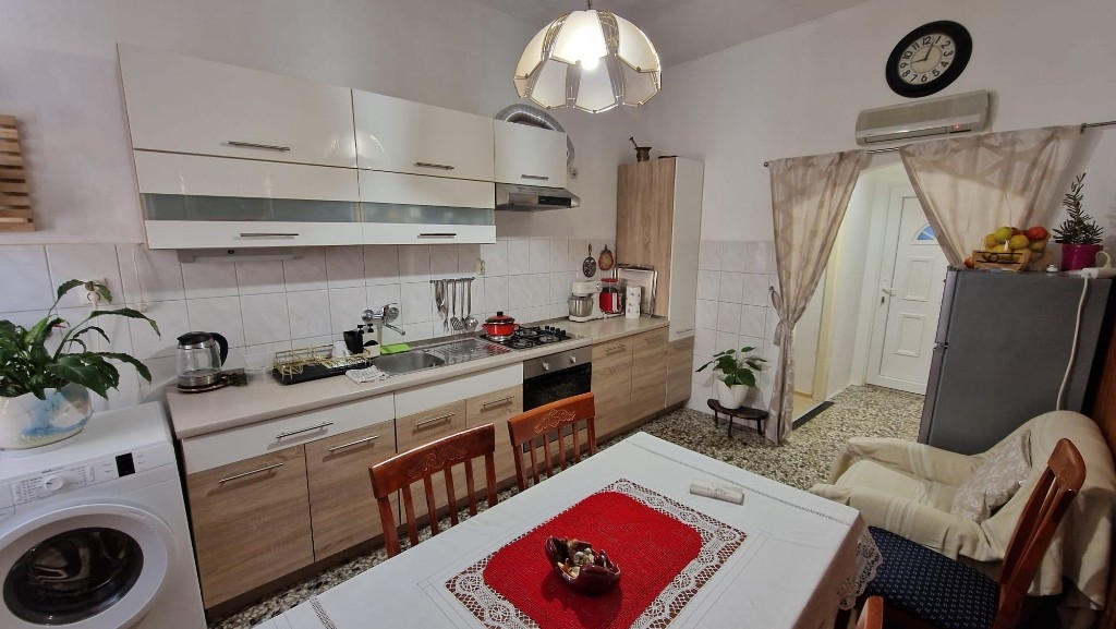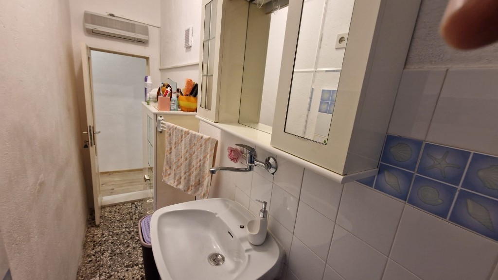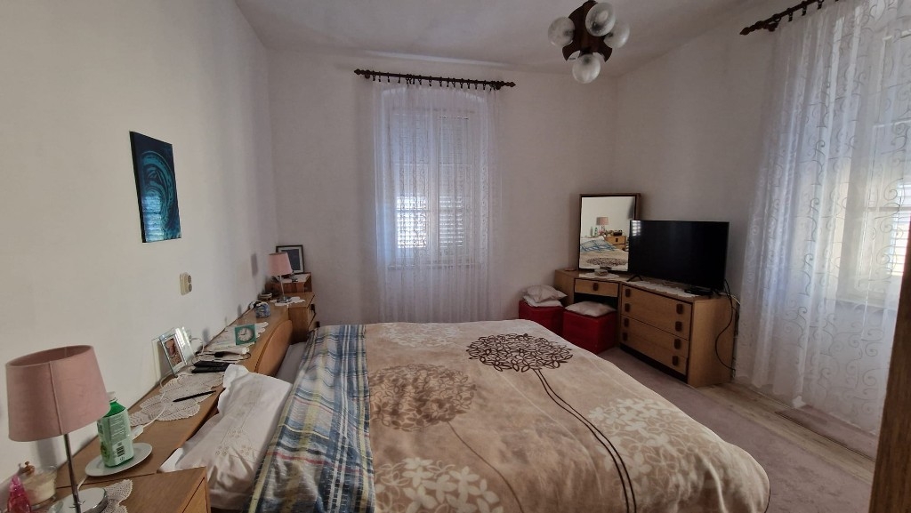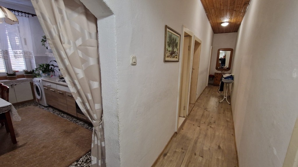 In the very center of Makarska, a two-bedroom apartment is for sale, located on the first floor of a traditional Dalmatian stone building. The apartment is functionally arranged and consists of an entrance hall, corridor, living room connected to the dining area and kitchen, bathroom, and two spacious bedrooms. It is oriented to the southeast, with large openings that provide plenty of natural daylight throughout the day. The net surface area of the apartment is 66.14 m².