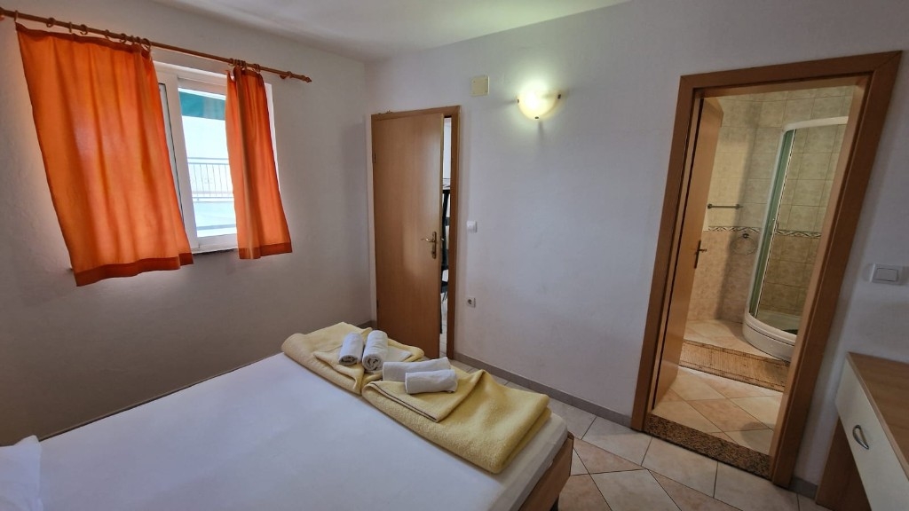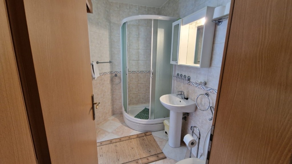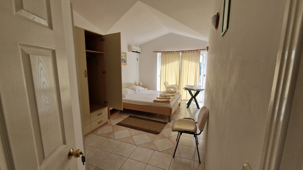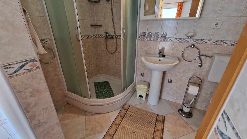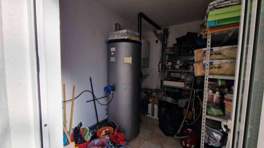 Třetí dům je přízemní budova o rozloze 75 m², která zahrnuje dvě garážová stání, sanitární místnost a sklad, přičemž územní plán umožňuje přistavět ještě tři patra o stejné velikosti, což poskytuje výbornou příležitost k rozšíření. Přístup k nemovitosti je možný ze severní strany z hlavní silnice i z jižní strany od pláže, což zajišťuje úplnou praktičnost a snadné využívání. Nemovitost je vybavena solárním vytápěním nebo plynem, který je umístěn ve zvláštní místnosti mimo dům, a existuje i možnost vybudování vlastního bazénu pro zvýšení standardu bydlení. Všechny objekty jsou plně zlegalizovány, vlastnictví je čisté a jasné a domy se prodávají zařízené a vybavené, připravené k nastěhování bez dalších investic. Tato nemovitost představuje vzácnou příležitost k investici v jedinečném prostředí na atraktivní lokalitě u moře. Všechny tři objekty se prodávají jako celek!