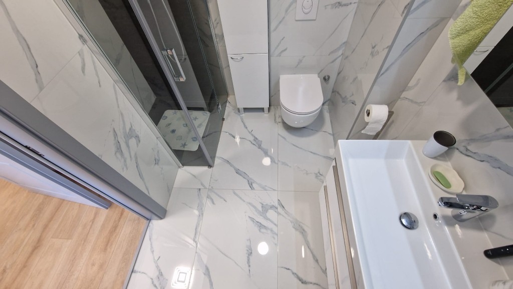 Die Wohnung ist mit hochwertigen Möbeln aus Italien eingerichtet, und die Küche von Dan Kuchen ist vollständig mit allen Geräten ausgestattet. Der Raum ist sehr gut genutzt und verfügt über zahlreiche maßgefertigte Einbauschränke im Flur und in den Schlafzimmern.