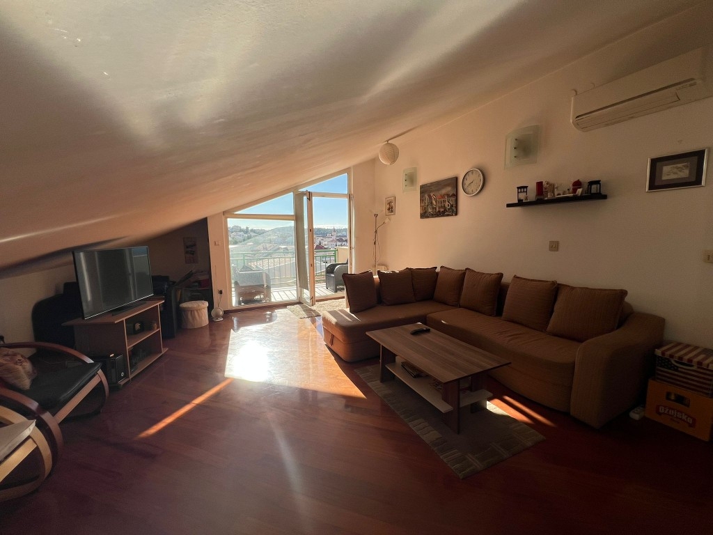 Die Wohnung befindet sich im 3. Stock eines gepflegten Gebäudes aus den frühen 2000er Jahren. Sie ist nach Norden und Osten ausgerichtet und bietet viel Tageslicht sowie einen schönen Blick auf das Meer und das Stadtzentrum von Makarska.