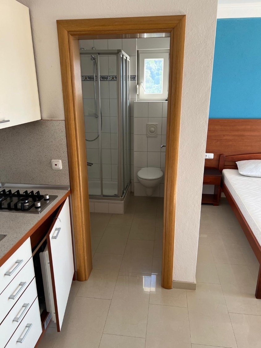 Første etasje og de tre øvrige etasjene har identisk planløsning. Hver etasje inneholder fire fullt utstyrte studioleiligheter med minikjøkken og egne bad. To leiligheter i hver etasje vender mot sjøen, mens de to andre vender mot Biokovo-fjellene, noe som sikrer godt lysinnfall og et behagelig opphold. I den høye loftsetasjen ligger en komfortabel treromsleilighet for eieren med stor terrasse og åpen utsikt mot havet og nærliggende øyer.